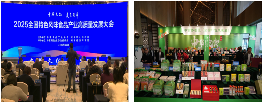 11月12日,由中国食品工业协会、兴化市人民政府主办的“2025全国特色风味食品产业高质量发展大会”在江苏省兴化市隆重召开。会议以“中华文化,美食精华”为主题,汇聚了来自特色食品主要产区地方政府部门、省市食品协会、食品骨干企业和食品科研院所及媒体的300余位嘉宾,共同研究探讨特色风味食品产业在新时代发展路径与使命担当。同时,通过政策解读、专题演讲、企业分享、名录发布等环节,全面展现了包括粮油、肉类、水产、烘焙、坚果、果蔬、调味品、调理制品、方便食品、茶饮和酒类等众多品类在内的我国特色风味食品产业的发展成果与未来图景。