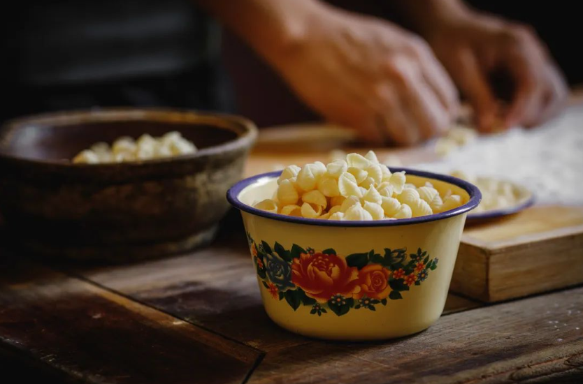 山西面食技艺被誉为“东方食艺活化石”,猫耳朵与剔尖尤为出色。在面食店中,师傅们以精湛的手艺,将面团化作猫耳状或如银梭入水的面鱼,每一次操作都仿佛与面团进行着一场无声的对话。