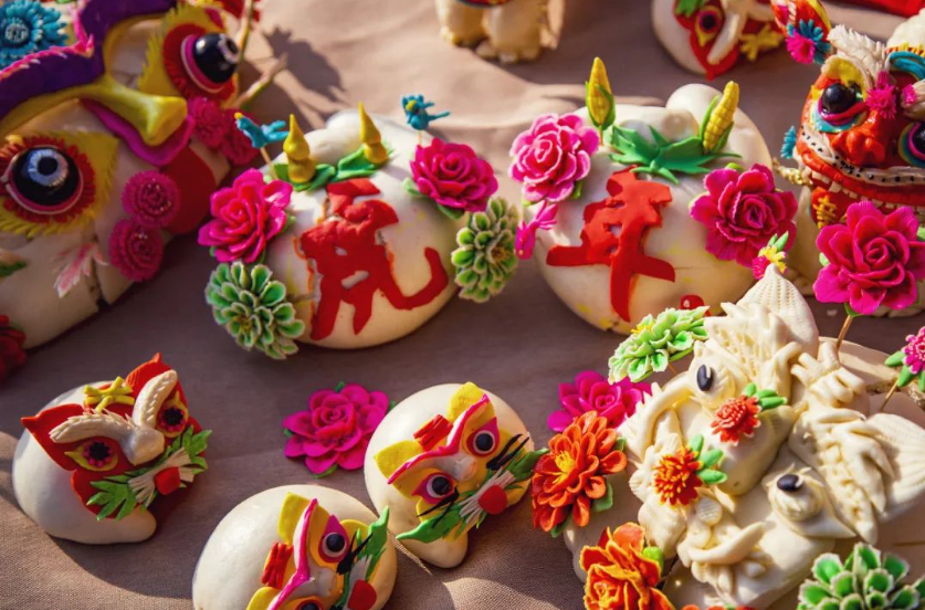 在山西晋南闻喜,面粉被赋予了情感的色彩。闻喜花馍制作技艺,将麦粉幻化为龙凤、花果、祥兽等生动形态,每一道褶皱都蕴含着匠人的美好祝愿。