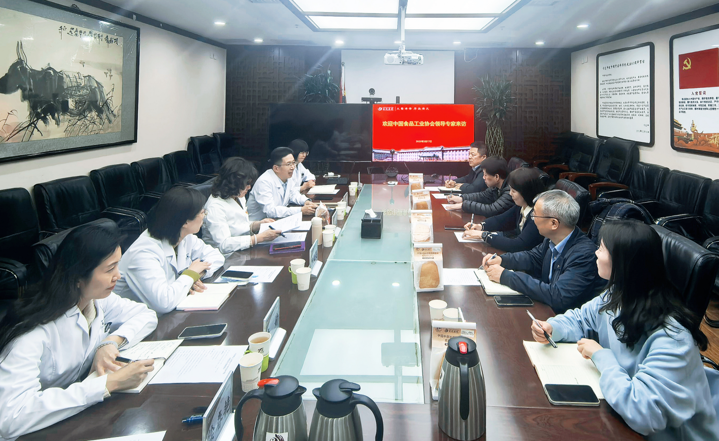 2026年3月17日,中国食品工业协会党委书记、副会长王琪一行到中国中医科学院西苑医院调研,与西苑医院党委书记李秋艳、副院长王培利等座谈交流,在共同推进药食同源食品研发、标准制订、成果转化等合作事项上达成共识。双方一致表示,将进一步发挥各自资源禀赋与专业优势,建立长效合作机制,携手赋能药食同源产业高质量发展。