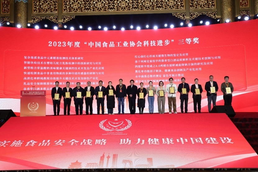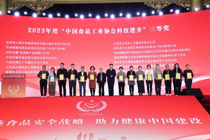 为加快现代化食品工业产业体系建设,以科技创新引领新质生产力发展, 2024“全国食品工业科技进步大会”于12月16日在北京饭店召开。十届全国人大常委会副委员长顾秀莲和十二届全国政协副主席刘晓峰出席大会,并为荣获2023年度“中国食品工业协会科学技术奖”优秀项目颁发奖牌。
