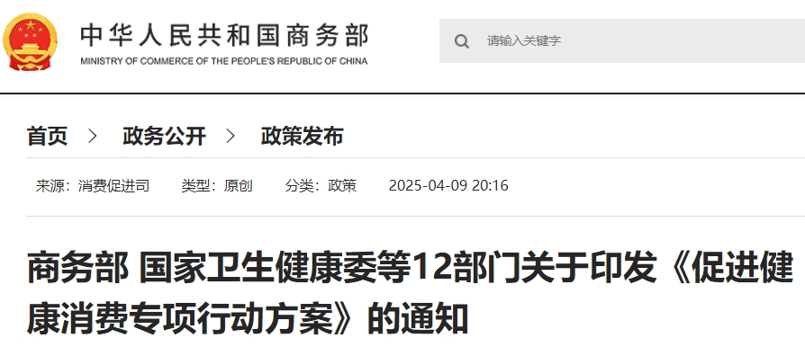为贯彻落实党中央、国务院关于大力发展健康消费的决策部署,按照《国务院关于促进服务消费高质量发展的意见》有关工作要求,培育和发展健康消费领域新质生产力,提升健康商品和服务供给质量,更好满足人民美好生活需要,商务部、国家卫生健康委等12部门研究制定《促进健康消费专项行动方案》。现印发给你们,请结合实际认真贯彻落实。