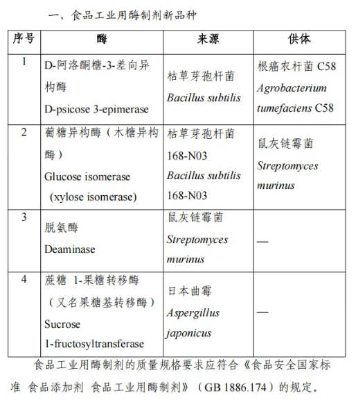 蔗糖 1-果糖转移酶:又名果糖基转移酶,是新生产菌来源的食品工业用酶制剂新品种,主要用于催化蔗糖转化为低聚果糖,如在低聚果糖的加工生产中使用。