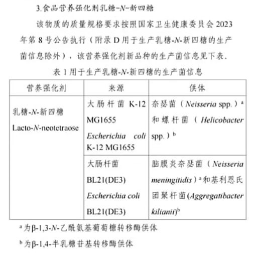 食品营养强化剂 2’-岩藻糖基乳糖、乳糖-N-新四糖:作为新生产菌来源的食品营养强化剂新品种,可用于增加食品中母乳低聚糖(HMO)的含量。