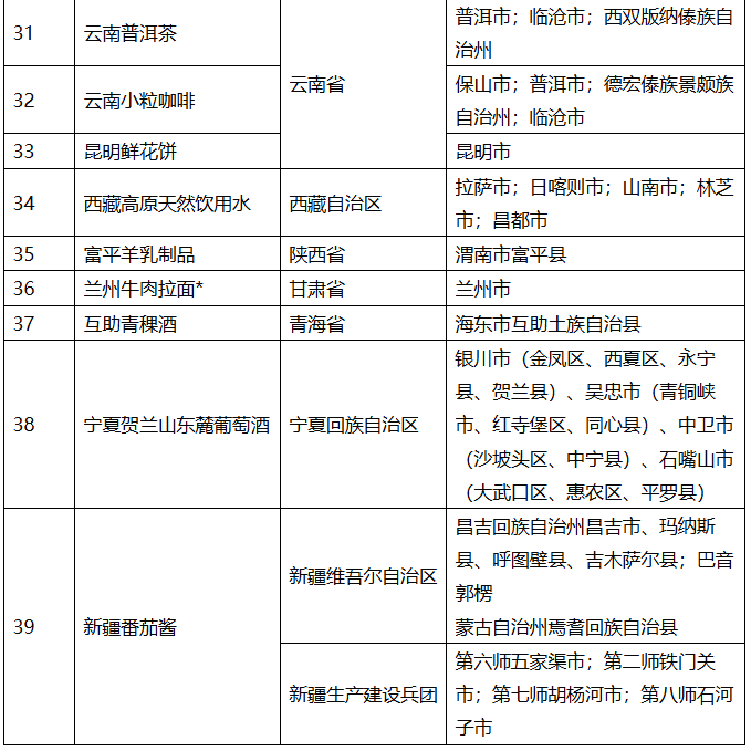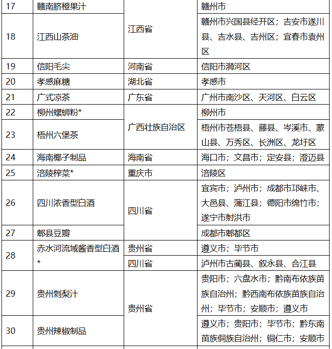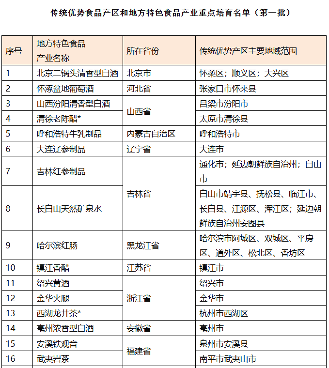 注:标*地方特色食品产业已纳入我部“首批中国消费名品名单”。