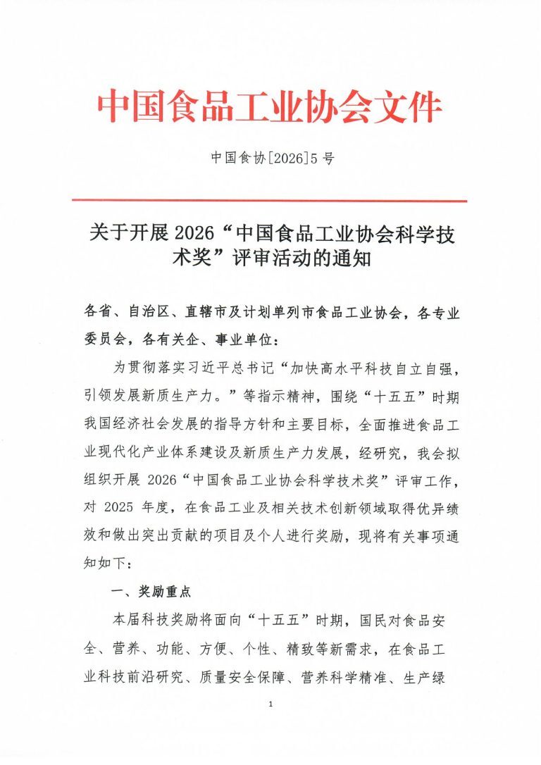 关于征集TESGA2026特种食品创新成果的通知 各有关单位: 为深入贯彻落实党中央建设健康中国和发展新质生产力的战略部...
