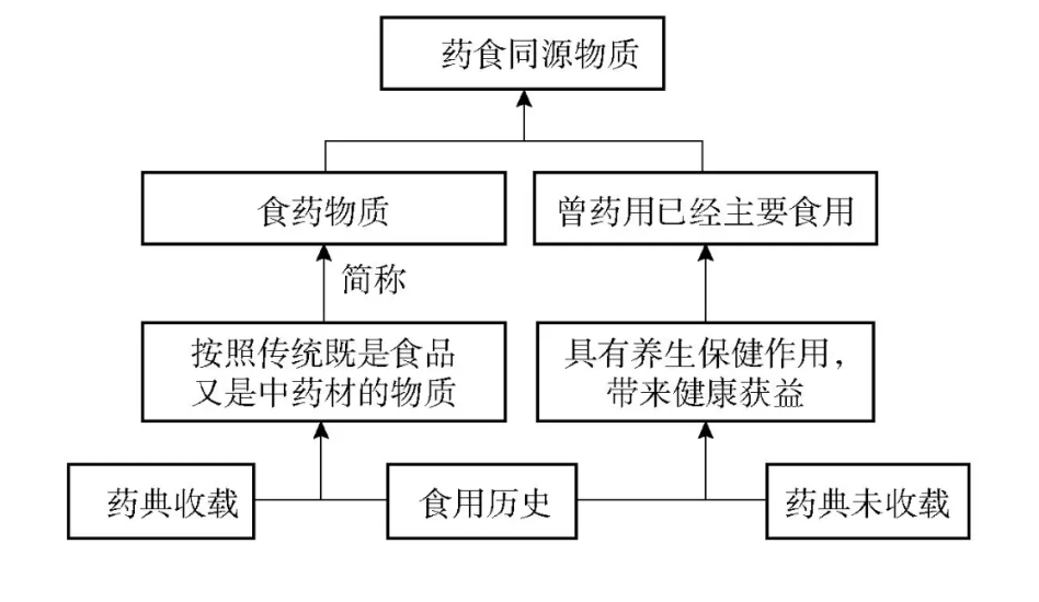 《规定》明确食药物质是指传统上作为食品,且列入《中国药典》的物质。该定义中,“传统上作为食品”强调了食药物质的食品属性,即纳入食药物质目录中的中药材物质首先应当已经长期以食品的形式食用。传统食用历史的认定,一般要求该物质在一定的人口覆盖范围(如至少两个县级区域)内,具有30年以上持续作为食品安全食用的历史。“列入《中国药典》”明确了食药物质管理范围。按照我国药品管理相关法规,中药材物质属于药品。在药品管理体系里,除《中国药典》外,还有部颁药品标准和地方药品标准,列入其中的中药材种类繁多,均纳入食药物质目录管理并不现实,因此我国食药物质管理的对象仅限《中国药典》(“药材和饮片”部分,下同)收载的中药材品种,其基源和使用部位应当与药典记载一致。