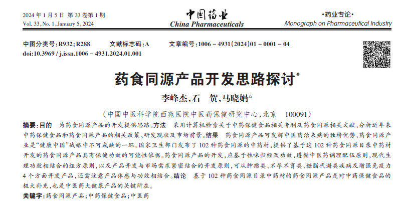 药食同源是中医药学特有的健康理论,是饮食文化与中医药文化共同发展的成果。在国家持续推进“健康中国”战略的大背景下,基于治未病理念,不断涌现出了以“药食同源”为抓手的新思路、新方法、新理念。