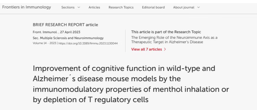 实验结果表明,薄荷醇通过气味刺激增强了免疫反应和下调大脑中的 IL-1b 和 IL-6 mRNA 表达,显著改善了普通小鼠和AD小鼠模型(APP/PS1)的认知功能。即薄荷醇可能通过免疫调节和细胞因子表达的改变来达到改善认知的作用。