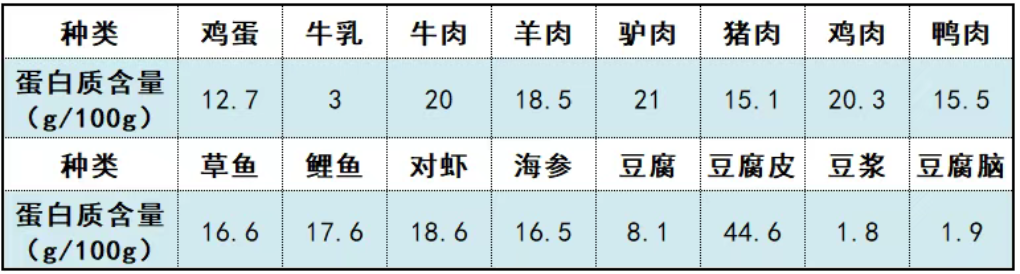 优质蛋白质食物蛋白质含量